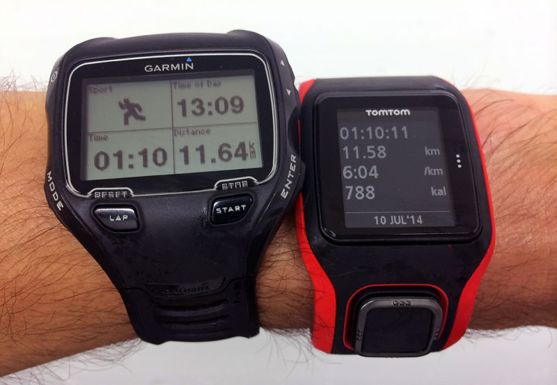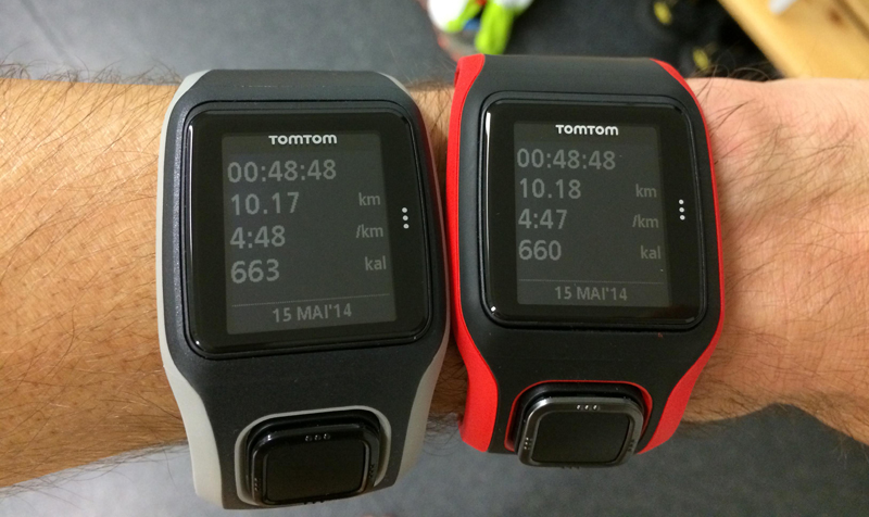 Ein ähnlicher Vergleich mit der Garmin 910XT und der TomTom Runner Cardio ergab eine Abweichung von 60 m also nur 0.5 % Abweichung von der Gesamtstrecke!