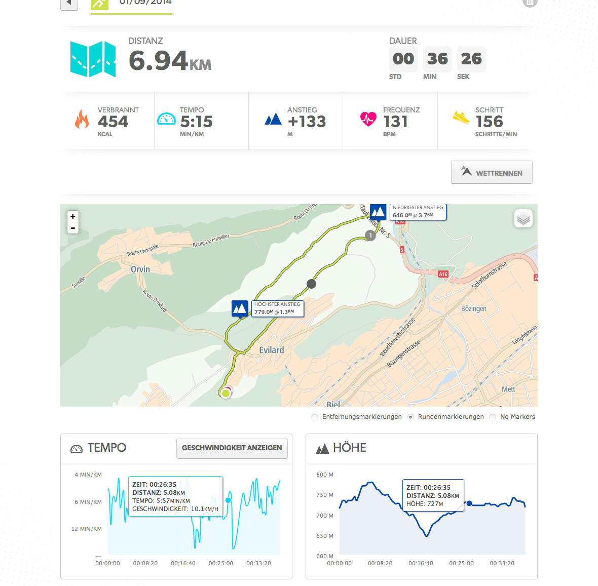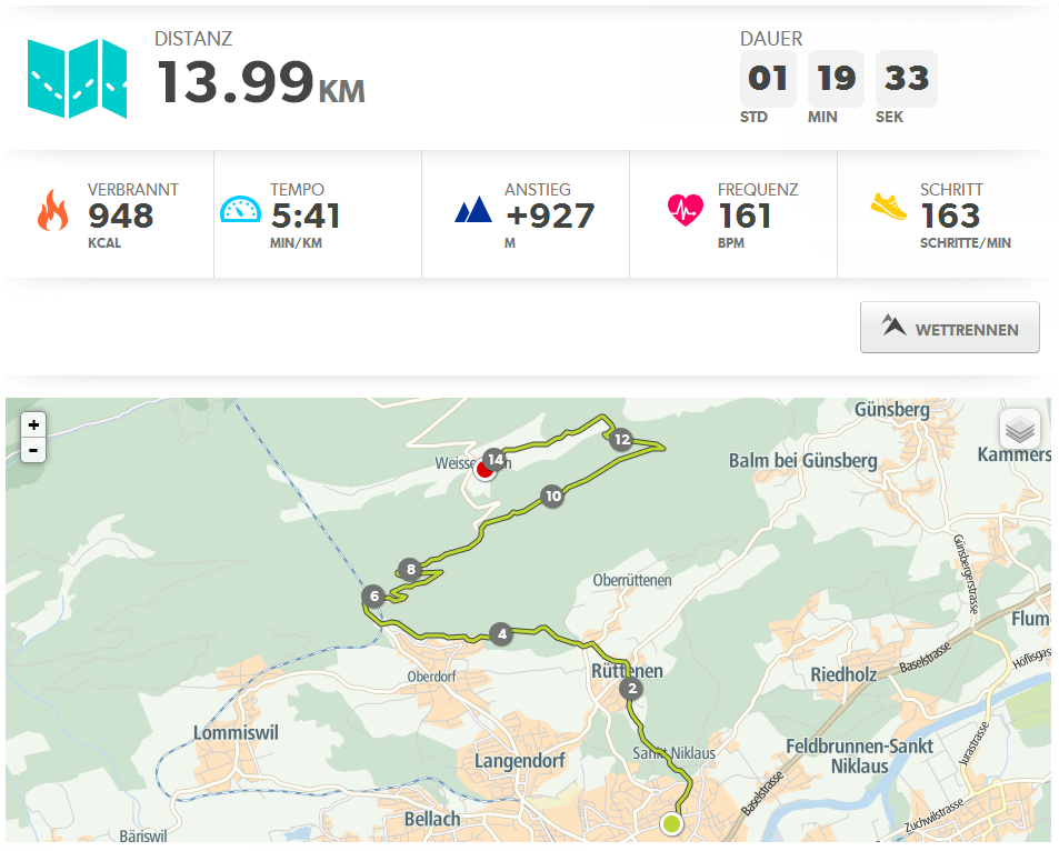 | 300 m Laufbahn (Lärchenwald, BASPO) | 900 m | 0.94 km | + 4.4 % |