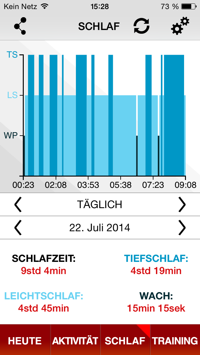 Besonders gut ist die Analyse des Schlafes mit dem a-rival Qairos und dem Sony SmartBand gelungen. Vor dem Einschlafen kann der Schlafmodus entweder manuell eingestellt werden oder aber es wird zuvor ein Zeitraum festgelegt, für welchen das Band automatisch mit der Aufzeichnung beginnt und endet.