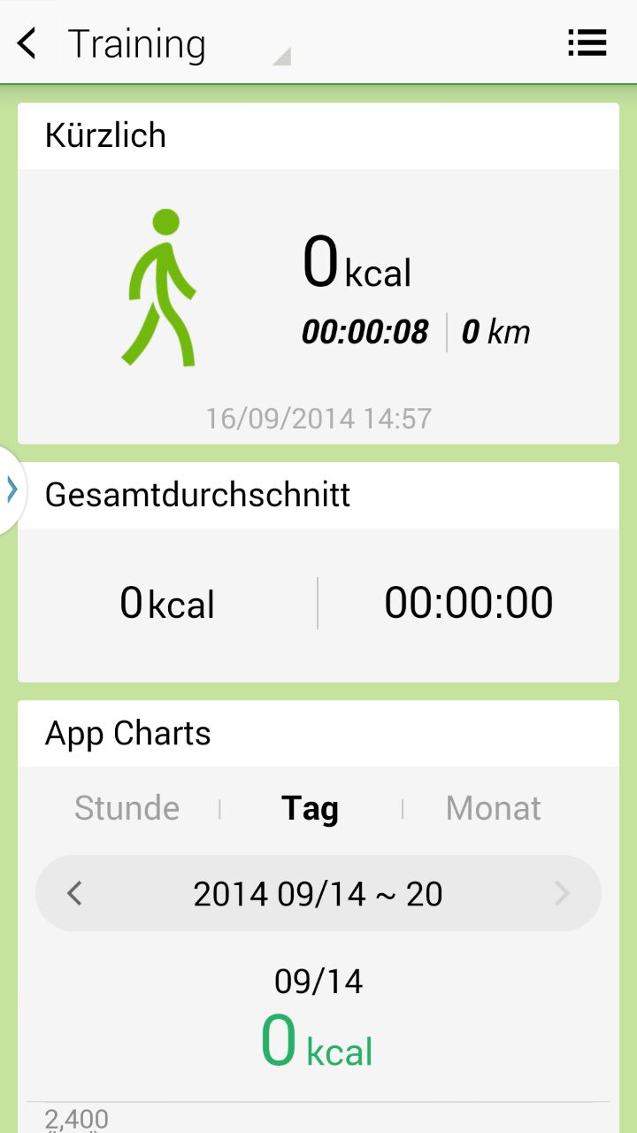 Sollwerte Gehen: 2,8 km, 30min, 3255 Schritte