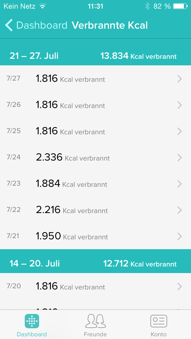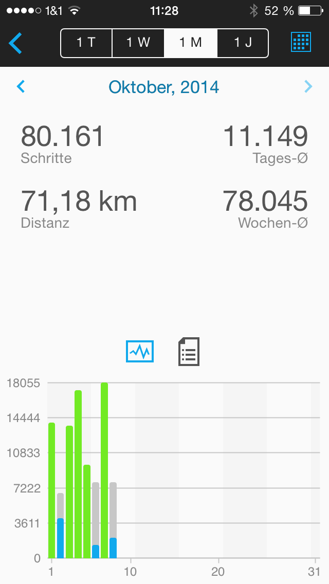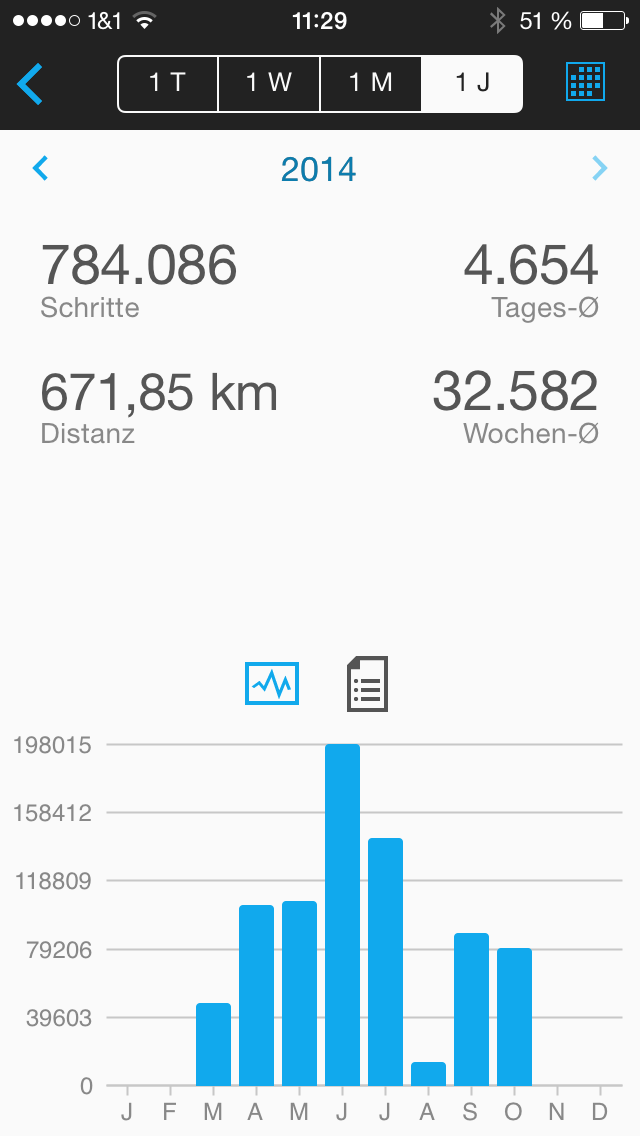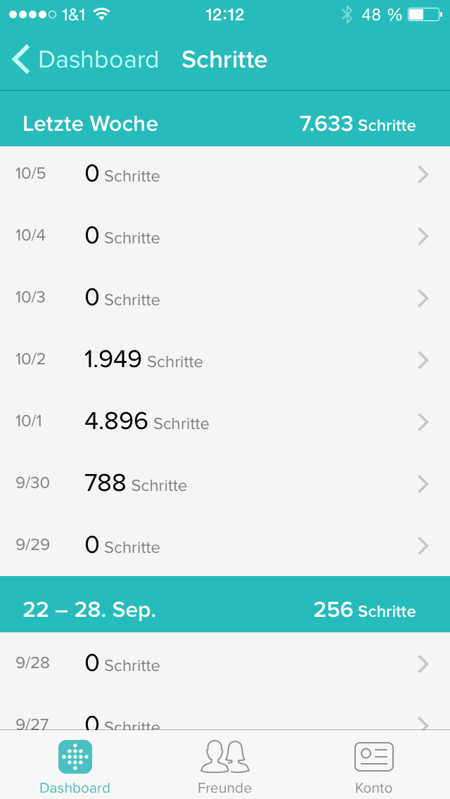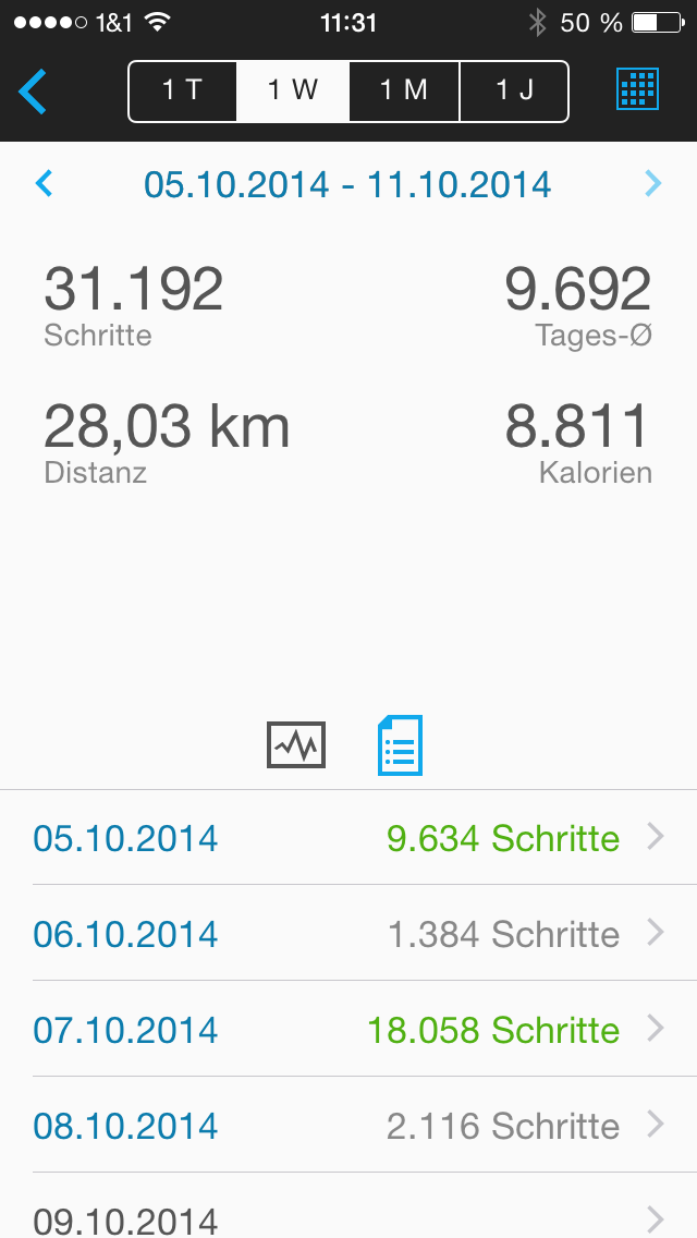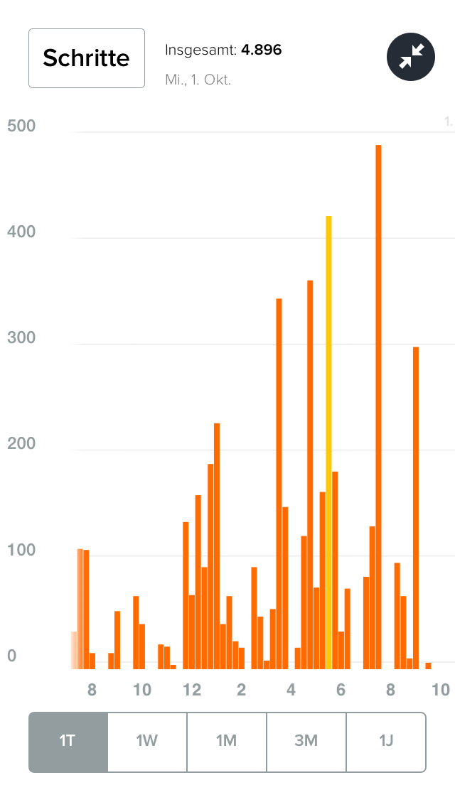 Nur einen halben Stern verdient sich die App von Fitbit, weil sie lediglich die aufsummierten aktiven Minuten eines Tages präsentieren kann. Eine Gliederung in einzelne Aktivitäten ist nicht vorhanden. Alle anderen getesteten Fitness-Tracker bieten gar keine Auswertung der Aktivitäten eines Tages an.