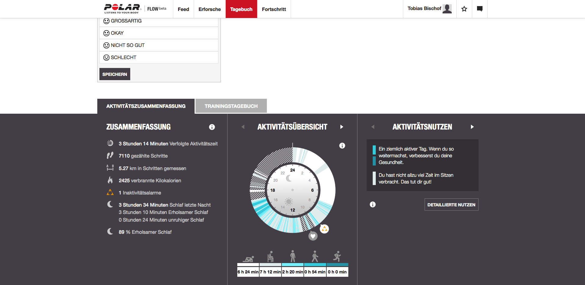 Automatische Schlafauswertung der Polar Loop App bzw. Online-Plattform flow