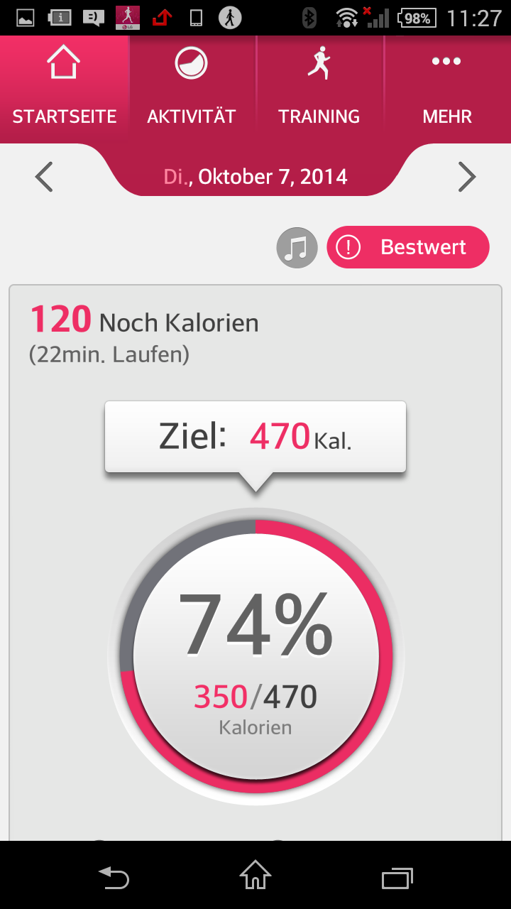 Sollwerte Laufen: 2,8 km, 20min, 2570 Schritte