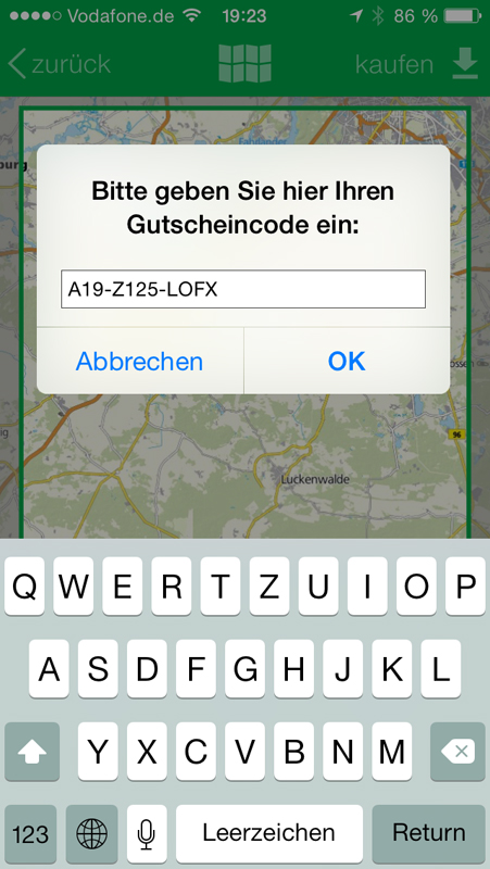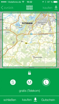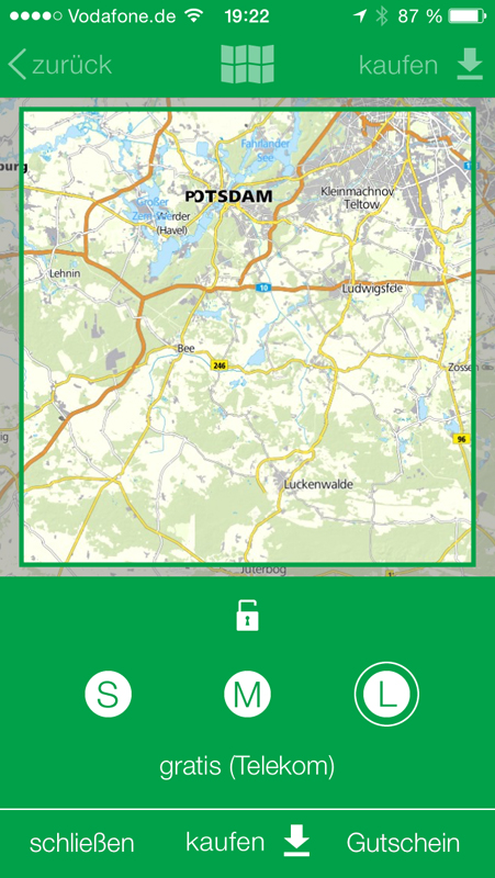 - Kartengröße “M” für ein Gebiet von 1500 km² kostet 1,79 EUR