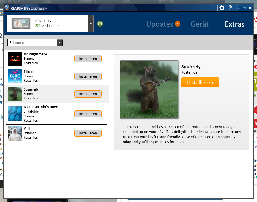 Neben der Text-to-Speech-Sprachausgabe gibt es weitere Stimmen, die zwar noch natürlicher und freundlicher klingen, aber keine Straßennamen oder Real Directions aussprechen. Darüber hinaus gibt es über Garmin Express die Möglichkeit, weitere und lustige Stimmen zu installieren.