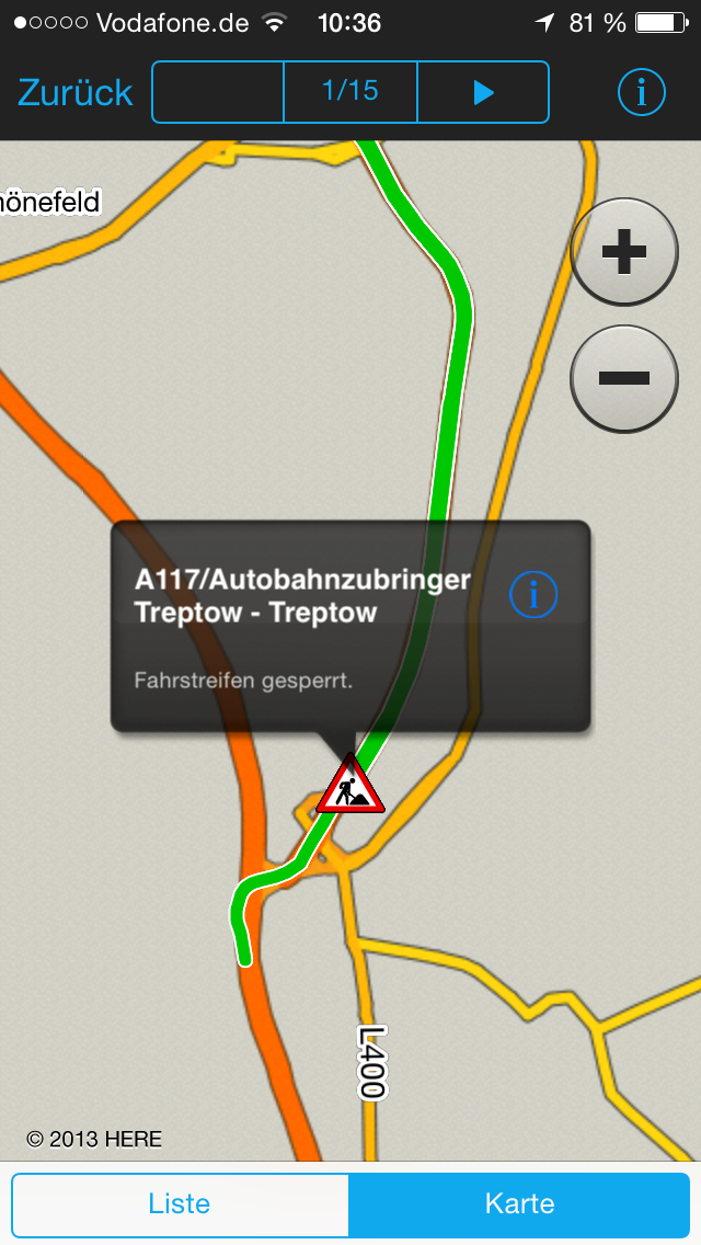 Die Qualität von HERE Traffic war auf unseren Testfahren optimal und selbst kleinste Verzögerungen wurden gemeldet und stimmten mit der Lage auf der Straße auf weniger hundert Meter genau überein.