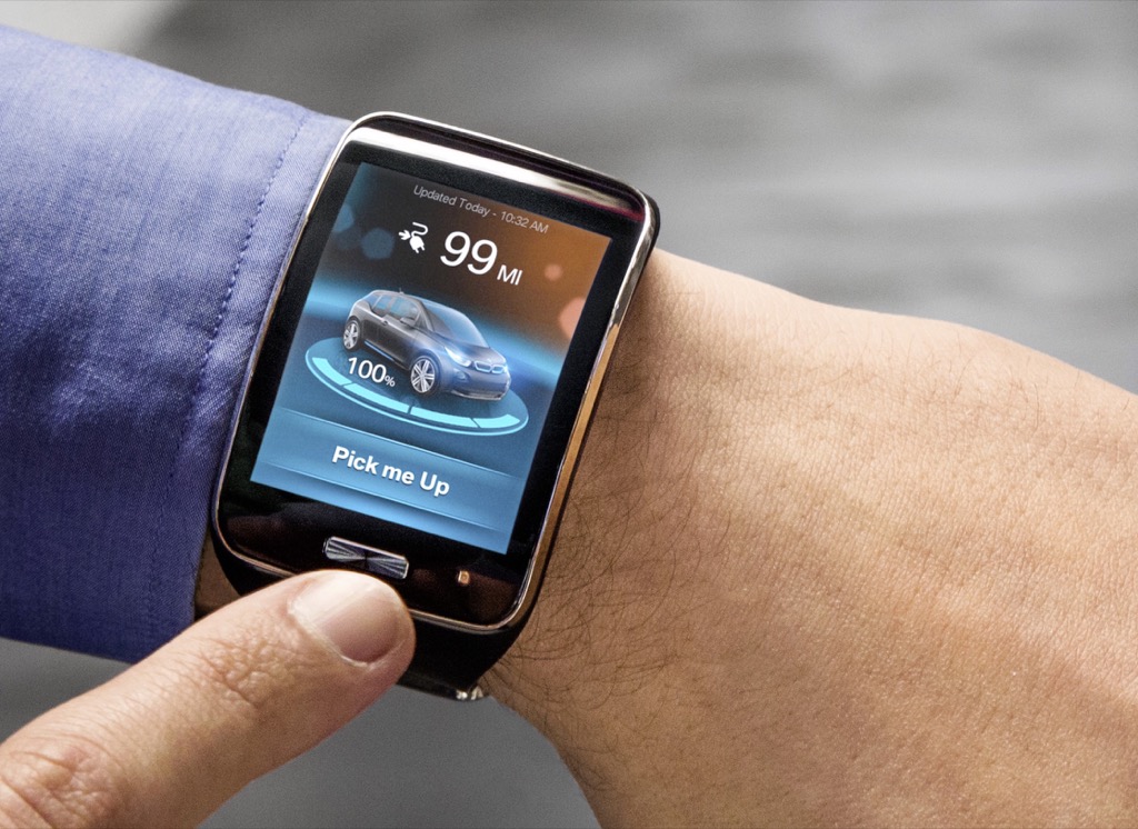 Mit seiner Smartwatch kann der Fahrer sein Auto wieder zum Eingang rufen. Dies kann bereits erfolgen, sobald der Nutzer sich auf dem Weg zum Parkhaus macht, denn das Auto berechnet die Zeit bis zur Ankunft des Fahrers, so dass sich beide am Ausgang treffen können.