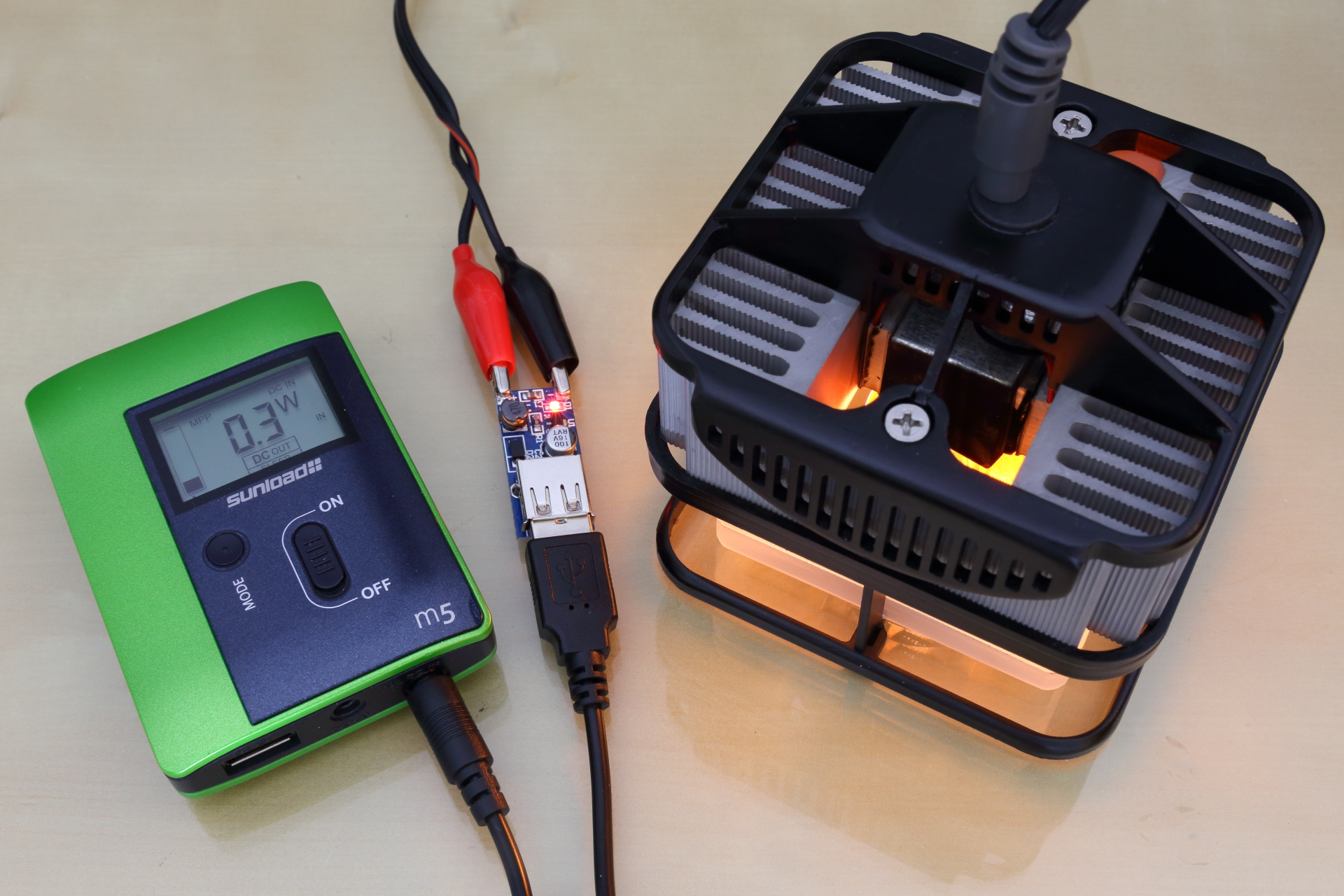 Das Ergebnis zeigt, wie komplex das Zusammenspiel zwischen Wärmequelle und angeschlossenem Gerät ist. Mit einem Teelicht erreicht man mit einem Sunload M5 – Step-Up-Wandler die mit Abstand besten Ergebnisse.