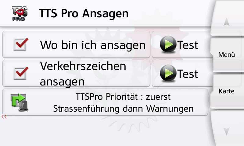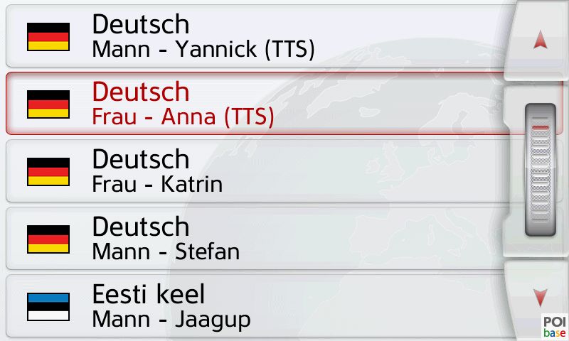 Alle vier deutschsprachigen Stimmen haben eine deutliche und angenehme Sprachausgabe. Gesprochene Fahranweisungen sind klar zu verstehen, sie klingen weder blechern oder künstlich. Die Fahranweisungen kommen genau passend zur Verkehrslage, weder zu früh noch zu spät. So bleibt dem Fahrer genügend Zeit, seinen 40 Tonnen schweren LKW sicher durch den Verkehr zu bewegen.