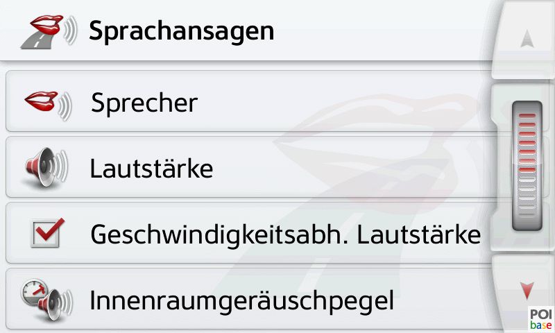 Zu den Stimmen gibt es im Menü einen Punkt “Geschwindigkeitsabhängige Lautstärke“. Wird dieser aktiviert, wird automatisch der Innenraumgeräuschpegel aktiviert. Hier wird in vier Stufen unterschieden (Leise, Normal, Laut und Dynamisch) wie die Lautstärke angepasst wird.