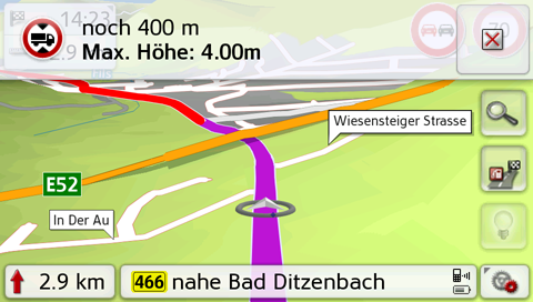 Die Truck- und Camper-Warnungen stehen auch dann zur Verfügung, wenn keine Routenführung aktiv ist.