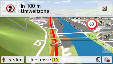 Das Becker transit.6 LMU weist auch auf Umweltzonen hin, die in immer mehr Großstädten eingerichtet werden. So kann der Fahrer um diese Beschränkung auch in unbekannten Städten sicher herumnavigieren.