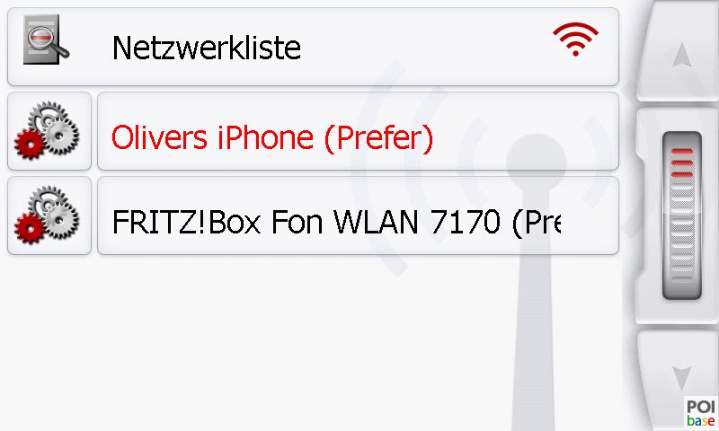 Um die Link2Live-Dienste nutzen zu können, wird ein Smartphone benötigt, mit dem das WiFi-Teathering möglich ist. In unseren Fall wurde während des gesamten Testbetriebes ein iPhone 6 benutzt. Aktiviert man in den Einstellungen des iPhones den Menü-Punkt „Persönlicher Hotspot“, erkennt das Becker transit.6 LMU das iPhone und verbindet sich automatisch damit. Das Navi nutzt dann die Mobilfunkverbindung des Smartphones, um die Link2Live-Pro-Dienste aus dem Internet abzurufen. Je nach Mobilfunkvertrag können so weitere Kosten für die Datennutzung anfallen. Von der Firma Becker wurde uns mitgeteilt, dass sich das benötigte Daten-Volumen für die Live-Verkehrsmeldungen auf ca. 15 MB im Monat beläuft. Im Test funktionierte das Zusammenspiel zwischen dem iPhone und dem Becker transit.6 LMU problemlos.
