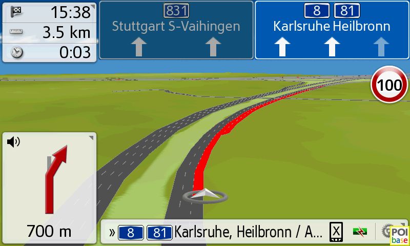 Als Unterstützung für die akustische Zielführung weiß besonders das neue Natural TTS zu gefallen. Die Erweiterung der bisherigen Sprachansagen sticht durch spezifische Ansagen hervor, die bei dichtem Verkehr sehr hilfreich sind. So kann der Blick auf der Straße bleiben und die nächste Abbiegung kann anhand von angesagten Merkmalen in der Umgebung ausgemacht werden. Die normalen Stimmen sind zwar ebenfalls deutlich und klar zu verstehen, geraten aber durch die neue Form der TTS-Stimmen ins Hintertreffen.