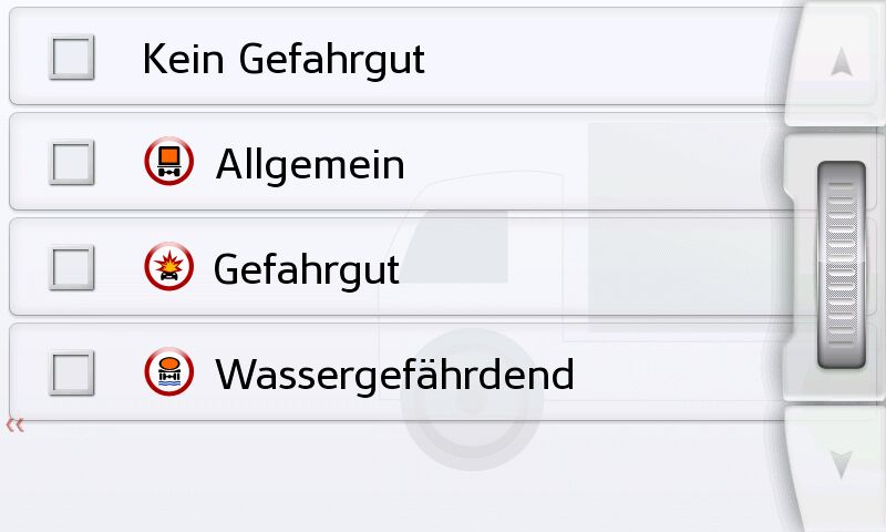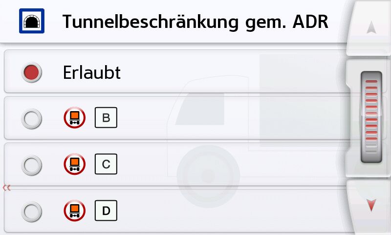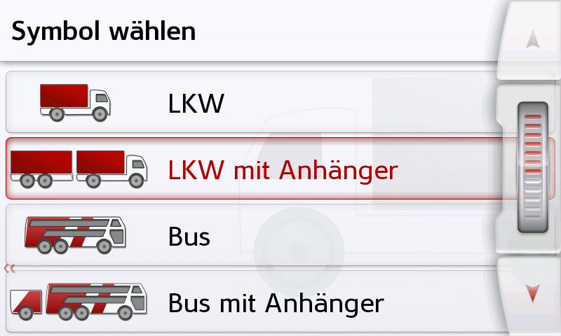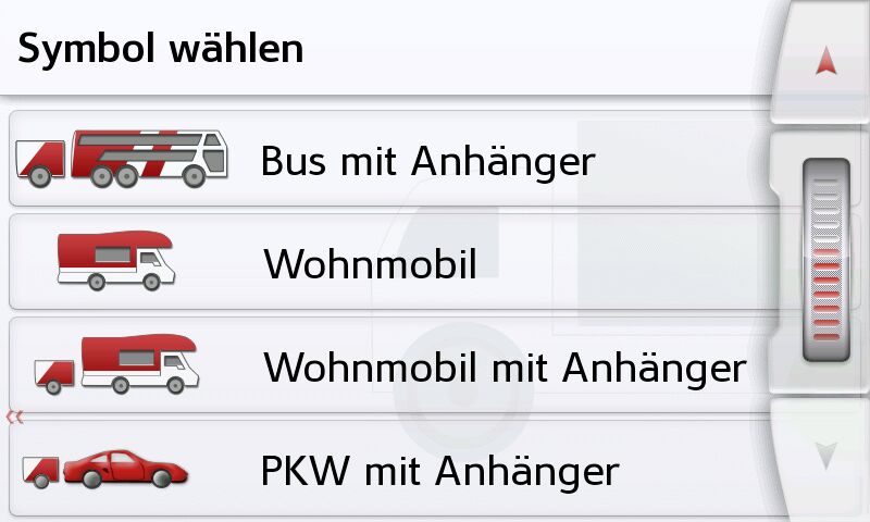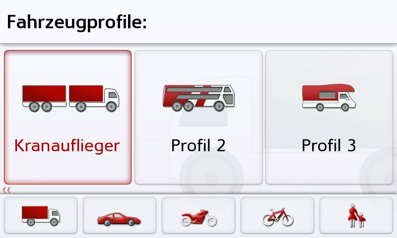 Ebenso gibt es umfassende Einstellmöglichkeiten für Reisebusse, Wohnmobile und PKWs. Für die genannten Fahrzeuge kann jeweils auch ein Profil mit Anhängerbetrieb ausgewählt werden.