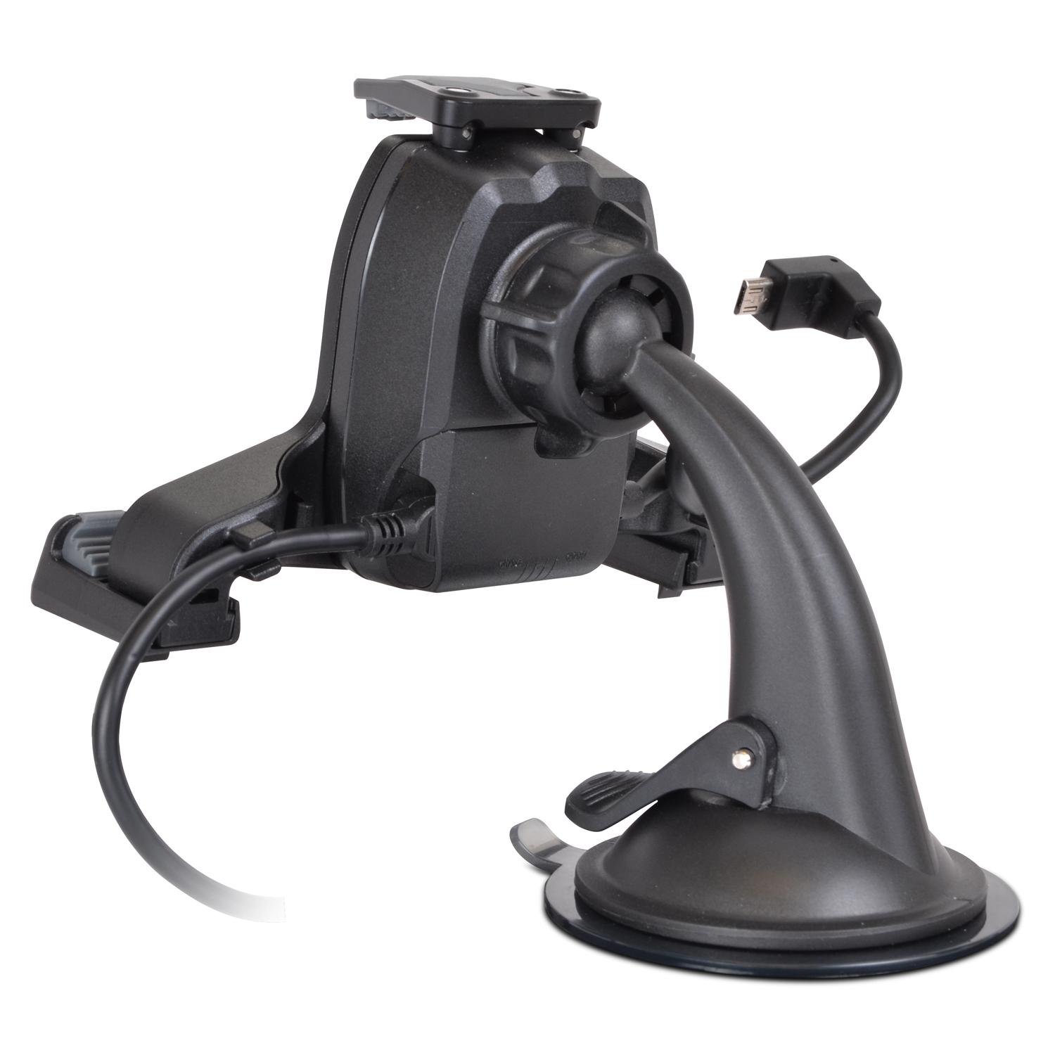 Ladeschale und Befestigungsarm sind schnell montiert. Das Ladekabel wird zugentlastet auf der Rückseite des Halters verlegt und anschließend durch eine Klappe geschützt. Der Saugnapf zur Befestigung an glatten Flächen sitzt bombenfest („ROK II Suction Mount”). Das Kugelgelenk erlaubt freies Drehen um 360° und hält die Halterplatte dennoch lagestabil. Mit der Gegenverschraubung des Gelenkes wird ein lockerer oder fester Halt eingestellt.