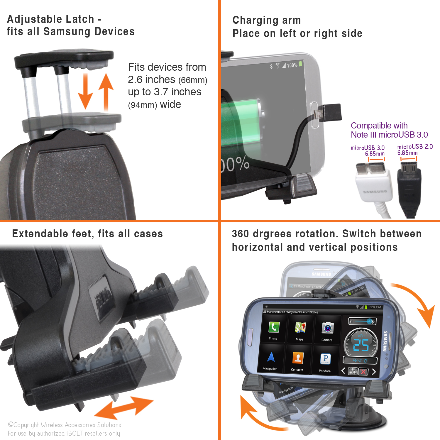 Die obere Klemmung ist knapp 30 mm höhenverstellbar. Dadurch können Geräte mit Breiten von 66 mm bis 94 mm aufgenommen werden. Die unteren Klemmungen sind horizontalverschieblich, sodass auch Smartphones mit (dicken) Gehäusen, Bumpern oder Rucksack-Akkus Platz finden. Das Car Dock wäre somit prinzipiell auch für mobile Navis (PND) bis zu einer gewissen Größe geeignet. Wie bei allen Universalhalterungen ist beim Einsetzen des Gerätes darauf zu achten, dass keine Tasten eingeklemmt werden.