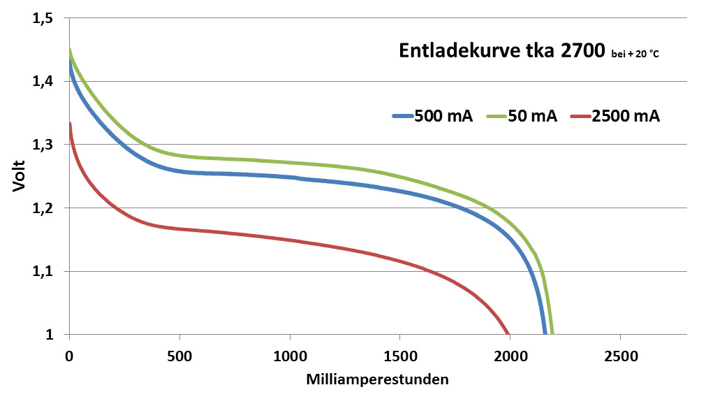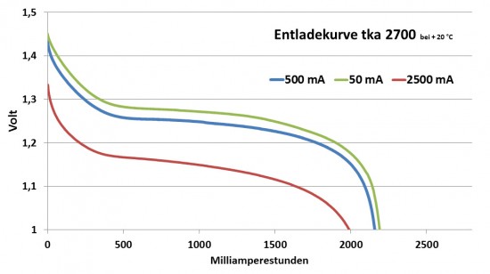 Der tka 2700 ist entgegen der Herstellerangabe kein Akku mit hoher Kapazität, sondern ein Hybrid-Akku mit ausgewogenen, in keinem Bereich herausragenden Eigenschaften und damit breitem Anwendungsspektrum.