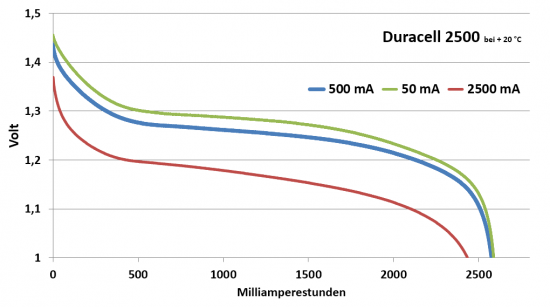 Streuung und Abmessungen sind recht gering und machen den Duracell 2400 zu einem hochklassigen Akku für viele Anwendungsgebiete.