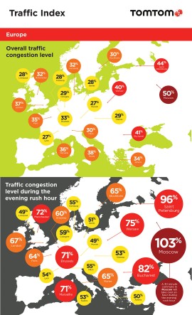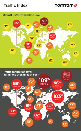 TomTom hat heute seinen jährlichen Stauindex veröffentlicht, in dem die Auswirkung von Verkehrsbelastungen in über 200 Städten weltweit betrachtet wird. Die dafür herangezogenen Verkehrsdaten stammen aus dem Jahr 2014.