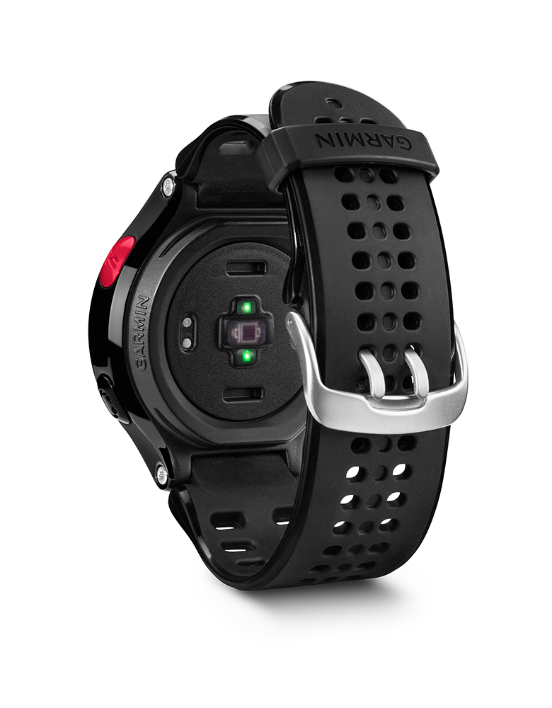 Mit der Forerunner 225 gibt es nun auch von Garmin ein erste Laufuhr mit integrierter Herzfrequenzmessung. Ein Sensor auf der Rückseite der Uhr misst den Puls direkt am Handgelenk, wodurch der Träger seinen Herzschlag auch im Alltag ohne angelegten Brustgurt überprüfen kann. Zusätzlich machen Fitness-Tracking Funktionen die Uhr zum ständigen Begleiter auch zwischen den Trainingseinheiten.