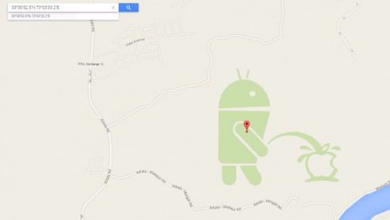 Erst vor wenigen Wochen hatte ein Nutzer über die Map Maker Webseite Änderungen eingereicht, die offenbar ungeprüft von Google freigeschaltet wurden. Er konnte somit in der Nähe von Pakistan verschiedene Graffitis in die Karte einbinden, unter anderem ein Bild auf dem das Android Maskottchen zu sehen war, welches sich auf das Apple-Logo erleichterte.