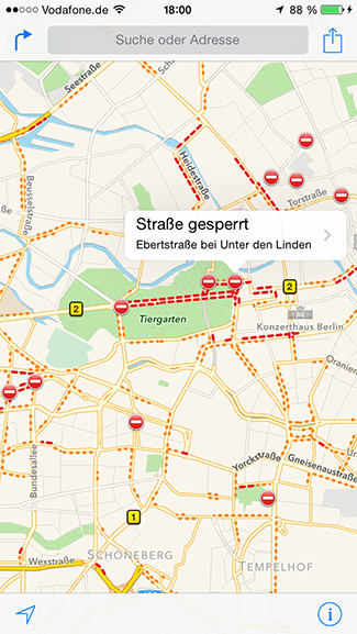 Am Montag hat Apple die neuste Version seines mobilen Betriebssystems iOS präsentiert. Die darin enthaltene, erweiterte Karten-App wird neben Stadtplänen auch die Fahrpläne des öffentlichen Personennahverkehrs enthalten. Eine weitere wichtige Neuerung wurde während der Vorstellung jedoch nicht gezeigt, denn Verkehrsinformationen können mit der iOS 9 auch die aktive Route beeinflussen.