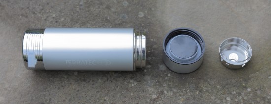 Zunächst ist der Terratec HotPot 1200 eine Thermoskanne mit ca. 350 ml Inhalt. Im Boden der Thermoskanne befindet sich ein eingebauter 1200 mA starker Lithium-Lionen-Akku, welcher als Powerbank bzw. externer Akku verwendet werden kann. Zum anderen befindet sich im Boden ein Thermogenerator, welcher den eingebauten Akku aus der Wärme der Flüssigkeit laden soll. Über eine USB-Buchse wird der interne Akku geladen und entladen. Der Hersteller legt dazu ein spezielles USB-USB-Kabel bei. Ebenfalls im Lieferumfang befindet sich eine USB-LED-Lampe, welche direkt in den HotPot 1200 gesteckt werden kann.