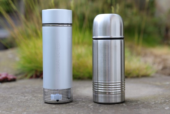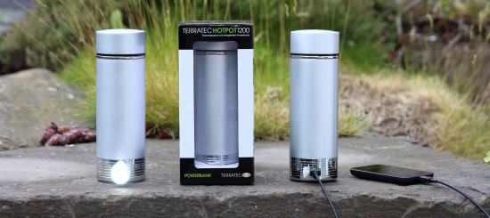Die Firma Terratec hat für diesen Fall einen „Problemlöser“ entwickelt, den Thermoskanne Terratec Hotpot 1200 mit eingebautem Akku und Thermogenerator. Der Hersteller wirbt: „Generiert aus heißer Flüssigkeit Strom“ und weiter „Um den integrierten Akku (1200 mAh) komplett zu laden muss man die Thermoskanne ca. 8-10 mal mit heißem Wasser füllen.“