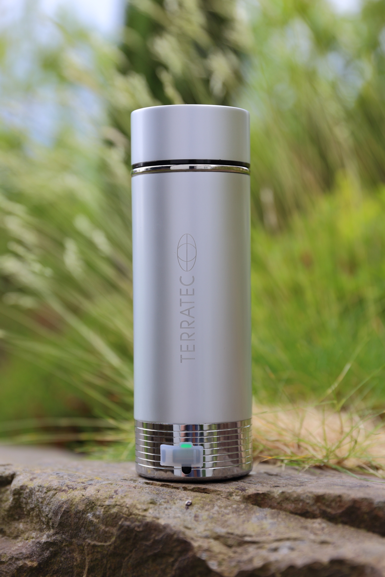 Die grüne Lade-LED leuchtet, wenn heißes Wasser eingefüllt wird. Leider konnten wir bei Raumtemperaturen an keinem unserer 3 Testgeräte eine nennenswerte Aufladung über den Thermogenerator feststellen. Selbst nach 2-3 Stunden Gepantsche mit kochendem Wasser, ist keine Ladung zu entnehmen! Das bereits theoretisch unsinnige Konzept ist damit auch in der Praxis gescheitert.