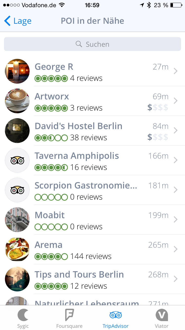 Daneben hat Sygic zahlreichen Drittanbieter in seine App eingebunden, wodurch die Suche nach weiteren Sonderzielen, das Abrufen von Bewertungen und sogar das Buchen von Hotelzimmern oder Restaurantreservierungen möglich ist. Die Integration von Diensten wie TripAdvisor, Yelp, Viator und Foursquare sind nicht nur ein Mehrwert für den Nutzer. Sygic eröffnet sich damit neue Einnahmequellen denn für Buchungen über die App, erhält der Entwickler eine Provision.