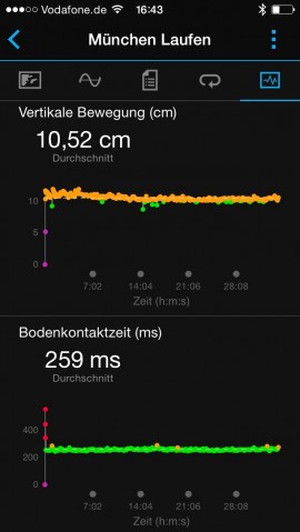 Neben den Analysemöglichkeiten des Vorgängers bietet der Forerunner 630 neue Laufeffizienzwerte die zur Verbesserung des Laufstils beitragen sollen. So kann die Uhr nun auch die Schrittlänge in Echtzeit messen und das Vertikalverhältnis sowie die Balance der Bodenkontaktzeit berechnen. Ebenfalls erweitert wurden die physiologischen Messwerte. Zur Ermittlung der maximalen Sauerstoffaufnahmekapazität (VO2 max), dem Erholungsratgeber sowie der Bestzeitprognose kommen nun noch ein Schätzwert für die Laktatschwelle, ein Belastungswert sowie eine Angabe zum aktuellen Leistungszustands des Körpers hinzu.