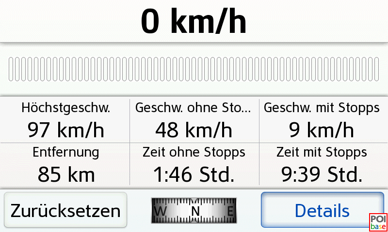 Mit einem Reisecomputer informiert das Navi über verschiedene Werte der letzten Fahrt oder der gesamten Nutzungsdauer des Gerätes. Interessant sind vor allem Werte wie Durchschnittsgeschwindigkeit, Zeit in Bewegung und Pausenzeiten. Eine besonders ausführliche Auswertung der Fahrten nehmen Garmin und Becker vor. Letztgenannter hat zusätzlich einen Rundenzähler, über den sich Hobby-Rennfahrer freuen werden. Das Medion GoPal E5470+ zeigt nur die wichtigsten Informationen.