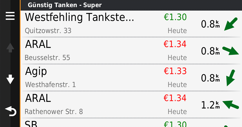 Neben den bereits bewerteten Verkehrsmeldungen bieten die Testkandidaten mit Online-Verbindungsmöglichkeiten in unserem Navi Test noch weitere Dienste. Die Garmin nüviCam stellt hier eine besonders große Auswahl zur Verfügung. Neben den Preisen von Tankstellen können auch Wetter-Informationen und Nutzer-Bewertungen zu Restaurants und anderen Geschäften von Foursquare abgerufen werden. Gegen Aufpreis ist außerdem ein Echtzeit-Blitzerwarner sowie der Dienst „Parken aktuell“ verfügbar, der Informationen zu Öffnungszeiten und Auslastung von öffentlichen Parkplätzen und Parkhäusern bereitstellt. Für Garmin und TomTom ist ergänzend eine Smartphone-App für iOS- und Android-Smartphones erhältlich. Über diese können beispielsweise Ziele auf dem Smartphone gesucht und dann an das Navigationsgerät im Fahrzeug übergeben werden. Bei Garmins App Smartphone Link ist dafür eine Bluetooth-Verbindung zwischen Navi und Smartphone erforderlich. Die App TomTom MyDrive sendet die Informationen über die GSM-Verbindung an das GO 6100. Das hat den Vorteil, dass der Fahrer sich nicht in der Nähe des Navigationsgerätes befinden muss und das Ziel schon im Büro vordefinieren und in seinem Fahrzeug direkt die Navigation starten kann. Das Becker professional.6 LMU nutzt die Online-Anbindung zusätzlich nur für eine POI-Suche, die jedoch sehr gute Ergebnisse hervorbringt.