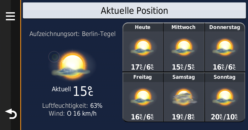 | Becker professional.6 LMU ![]() | Blaupunkt Travelpilot 72 LMU ![]() | Falk NEO 640 LMU ![]() | Garmin nüviCam ![]() | MEDION E5470 EU+ ![]() | MIO Combo 5107 LM ![]() | TomTom GO 6100 ![]() |