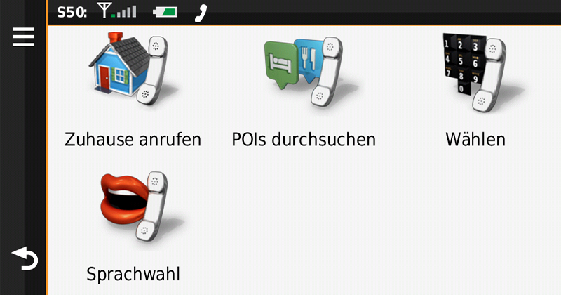 | Freisprechen | ![]() Akku Empfang Wählen Anrufliste Telefonbuch | ![]() Wählen Anrufliste Telefonbuch | ![]() | ![]() Akku Empfang Wählen Anrufliste Telefonbuch POIs durchsuchen Sprachwahl | ![]() Wählen Anrufliste Telefonbuch Vorlesen Anrufe Sync Kontakte/ Nachrichten | ![]() | ![]() |