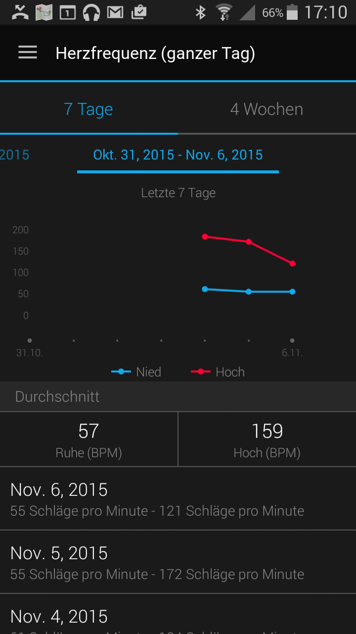 - Herzfrequenz (aktueller Wert und durchschnittlicher Ruhepuls)