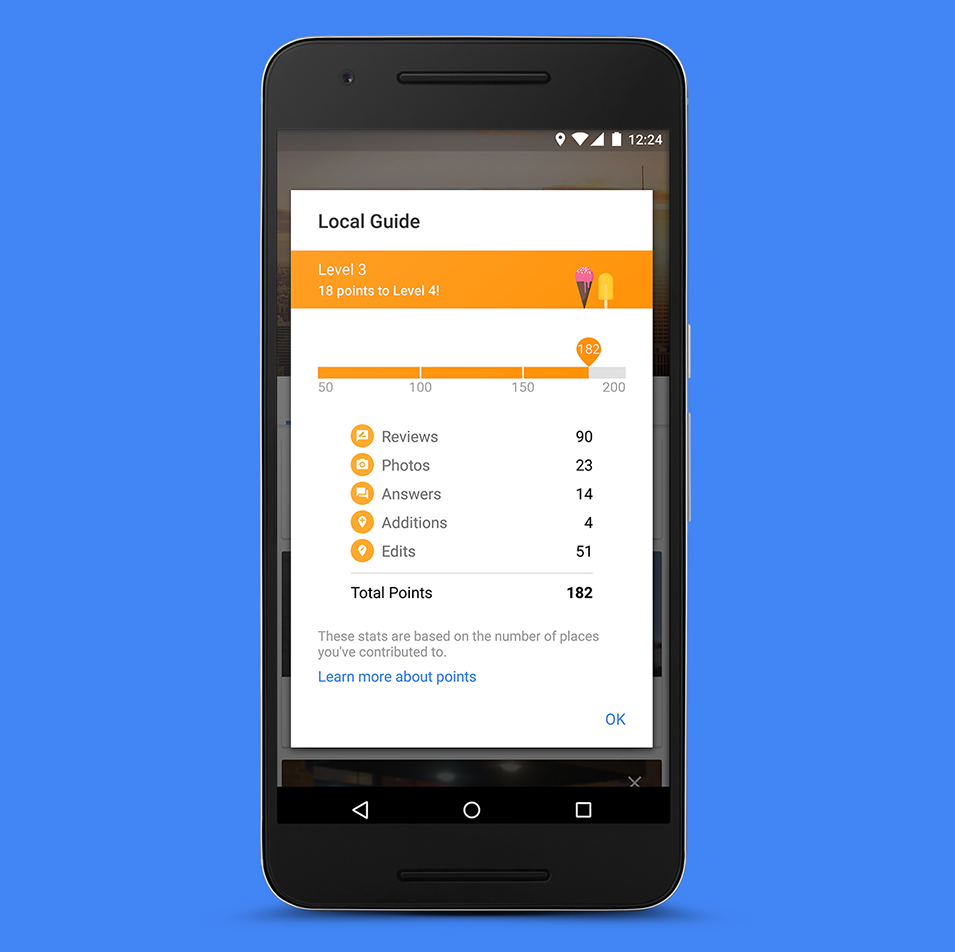 Täglich schließen Geschäfte, eröffnen neue Lokalitäten und ändern sich Öffnungszeiten. Nicht alle Änderungen kann Google selbst in seiner digitalen Karte erfassen und ist daher auf die Mithilfe von Nutzern angewiesen. Wer sich für das Local Guide-Programm registriert, erhält von Google Punkte wenn er Adressdaten korrigiert, Öffnungszeiten hinzufügt, Fotos zu einem Ort hochlädt oder Bewertungen abgibt.