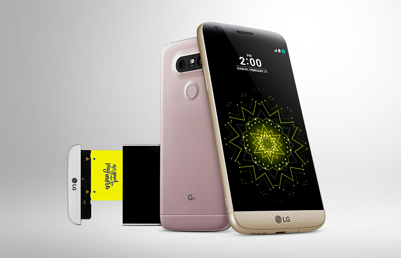Das Highlight des LG G5 ist ein ausziehbarer Einschub an der Unterseite des Gerätes der einen 2.800 mAh Akku beherbergt. Er lässt sich so einfach entnehmen und gegen einen vollen austauschen. Außerdem können auf diesem Wege weitere Zusatzmodule mit dem LG G5 verbunden werden. Zusammen mit dem Smartphone wurde das LG CAM Plus Modul vorgestellt, das physische Tasten zur einfacheren Handhabung der Kamera bietet und sie um einen intuitiven Autofokus und eine Belichtungssperre erweitert. Zudem stellt das Modul eine zusätzliche Batteriekapazität von 1.200 mAh bereit. Für eine Verbesserung des Klangerlebnis sorgt das LG Hifi Plus mit B O Play, das zusammen mit Bang Olufsen entwickelt wurde. Der HiFi DAC Audio Player ermöglicht die Wiedergabe von nativem 32-bit, 384 KHz High Definition Audio und kann auch außerhalb des LG G5 an jedem anderen Smartphone oder PC verwendet werden.
