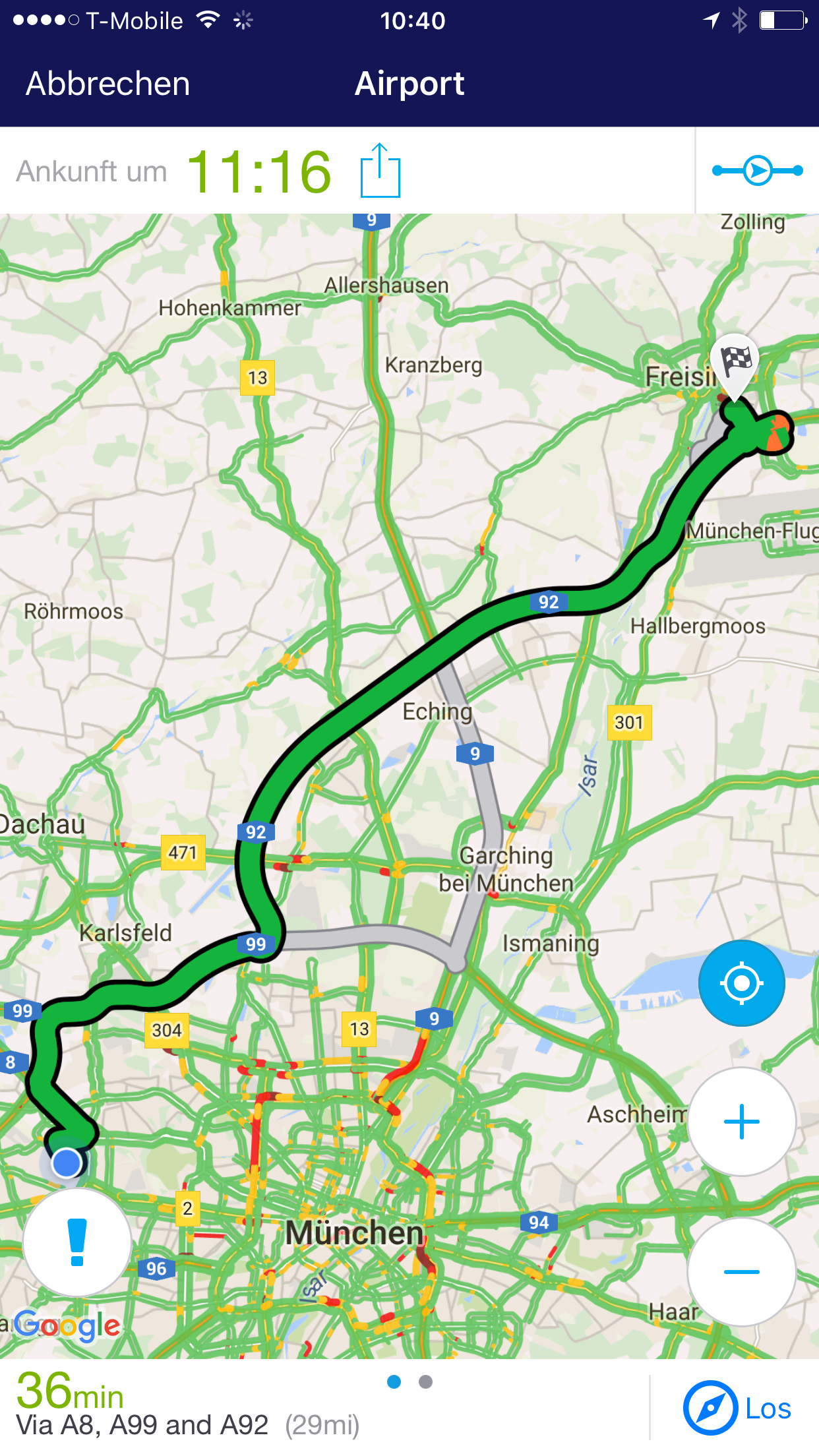 INRIX stellt außerdem Verkehrsinformationen bereit, die aus Daten aus einem umfassenden Crowdsourcing-Netzwerk von über 275 Millionen vernetzten Autos und mobilen Geräten erzeugt werden. Die App beobachtet die Verkehrslage proaktiv unter Berücksichtigung des voraussichtlichen Ziels und kann dem Nutzer so die optimale Abfahrtszeit vorschlagen. Zur Anzeige der Verkehrsdaten sowie für die Navigationsdienste nutzt die App Kartenmaterial aus der OpenStreetMap (OSM) Community. Die Kartendaten werden aus dem Internet abgerufen, weshalb für die Verwendung der App eine Internetverbindung benötigt wird. Eine Feedback-Funktion ermöglicht es Kartenfehler direkt aus der App heraus zu melden.