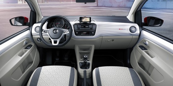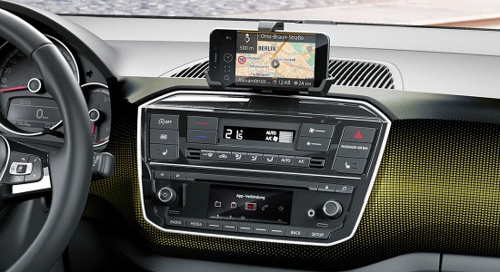 Statt dem Maps More System, über das im alten VW up! die Navigations- sowie Entertainmentfunktionen gesteuert werden konnten, erhält das Facelift-Modell eine in das Armaturenbrett integrierten Smartphone-Halterung. Das hier eingesetzte Smartphone kann über Bluetooth mit dem ebenfalls neuen Radio-System des VW up! verbunden werden und dient dann als Bildschirm zur Steuerung von Fahrzeugfunktionen, der Musikwiedergabe oder der Navigation. Eine speziell dafür entwickelte App bietet eine TomTom Navigationskomponente die auf der aktuellen NavKit-Engine des Anbieters basiert. Kartenupdates und der TomTom Traffic Verkehrsdienst sind hier nicht enthalten, können aber vom Nutzer kostenpflichtig hinzugebucht werden.
