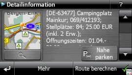 Die Camping- und Stellplatz POIs können mit der POIbase PC-Software auf das Navi geladen oder über die interaktive Karte betrachtet werden. Der Camping.info Camping- und Stellplatzführer kostet 9,99 EUR und enthält etwa 24.000 Campingpätze, 5.500 Stellplätze und 700 Caravan Händler in ganz Europa. Wohmobilfahrer, Camper oder Wanderer die häufig spontan einen Campingplatz suchen, können ihr Navigationsgerät mit dem neuen Dienst um wertvolle Informationen erweitern.