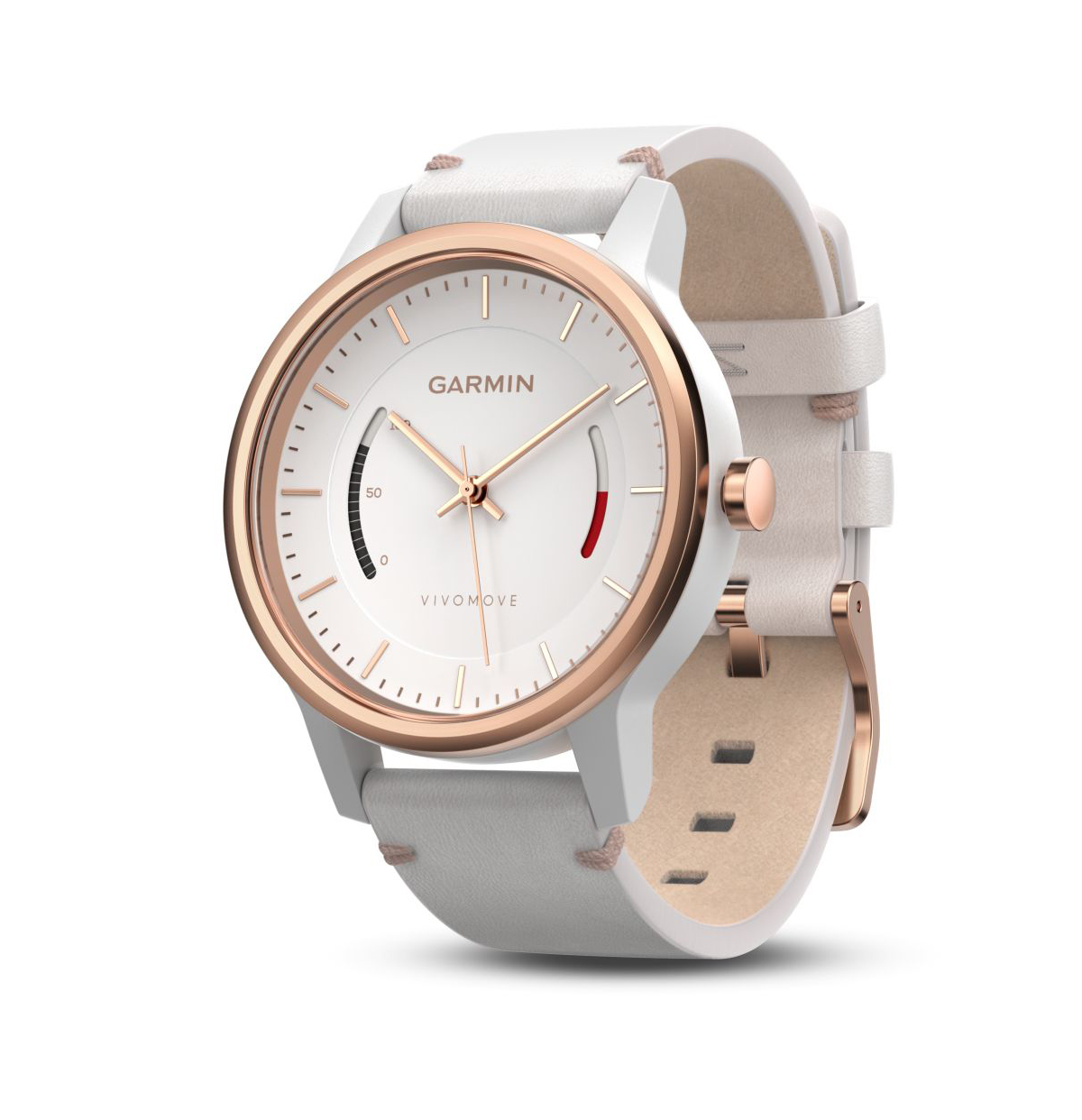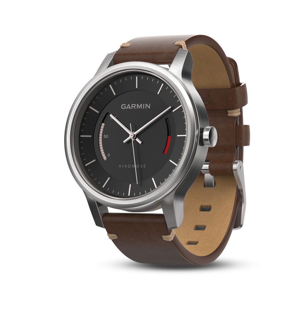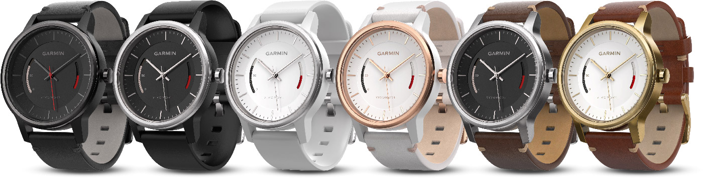 Die Garmin vivomove ist auf den ersten Blick eine herkömmliche analoge Armbanduhr, die zusätzliche allerdings noch zwei kleine digitale Anzeigen besitzt. Eine zeigt dem Träger wie weit er vom persönlichen Tagesziel entfernt ist, die andere mach auf zu lange Phasen ohne Bewegungen aufmerksam. Bewegungen erfasst die Uhr mit einem integriertem Sensor, der in der Nacht auch die Schlafphasen überwacht.