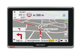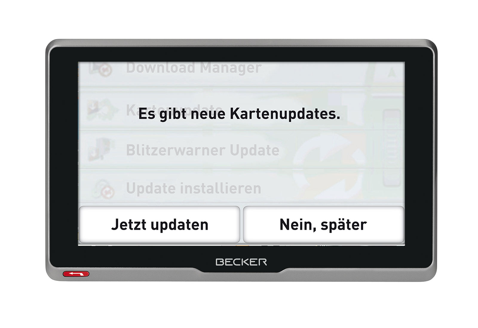 Dank Becker Connect kann das Navi Kartenupdate direkt auf dem Gerät über WLAN vornehmen, eine Verbindung mit einem Computer ist nur noch einmalig für die Freischaltung des lebenslangen Kartenupdateservice nötig. Unterwegs liefert Becker Connect bei bestehender Verbindung zum Smartphone Informationen zu Sonderzielen sowie Echtzeit-Verkehrsinformationen. Alternativ kann das Gerät auch auf den integrierten HQ TMC-Verkehrsfunkempfänger zurückgreifen um Staumeldungen zu empfangen.