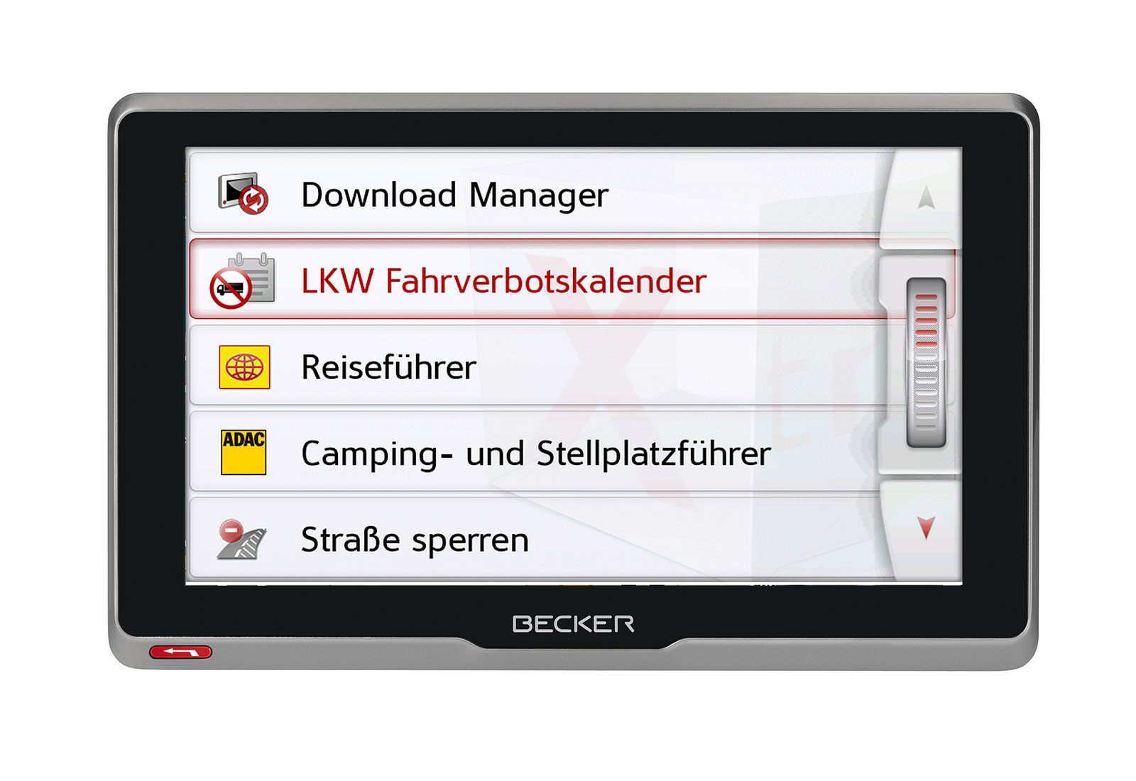 Beim finden einer passenden Route hilft der Routenplaner sowie die Becker RouteMove Funktion, mit der sich Strecken durch das Verschieben auf eine andere Straße individuell verändern lassen. Der EU Fahrverbotskalender unterstützt bei der Planung von Fahrten ins Ausland. Für Camper ist ADAC Camping und Stellplatzführer sowie der Marco Polo TravelGuide interessant, beide Reiseführer halten umfangreiche POIs bereit.