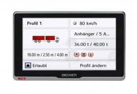Aufbauend auf das professional.6sl EU hat Becker auch ein neues Gerät für Berufskraftfahrer und Camper vorgestellt. Das Becker transit.6sl EU plus ist mit einer angepassten Software ausgestattet, die den speziellen Ansprüchen dieser Zielgruppe gerecht wird. So können die Abmessungen, geladenes Gefahrgut und die Höchstgeschwindigkeit des Fahrzeugs festgelegt werden, um eine optimal abgestimmte Route berechnet zu bekommen. Berücksichtigt werden dabei auch Umweltzonen mit denen die Durchfahrt für bestimmte Fahrzeuge be- bzw. eingeschränkt wird.