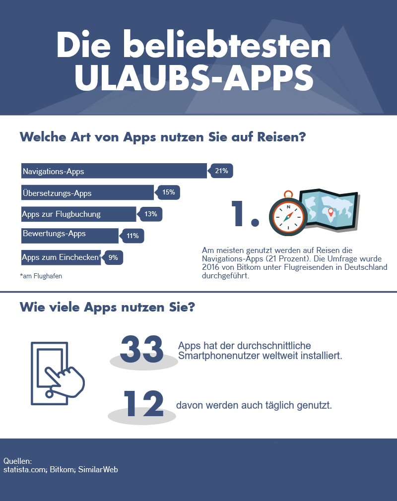 Wenn es um die Frage geht, wo man tagsüber einkaufen, abends essen und nachts feiern gehen kann, sind Reiseführer Apps gefragt. TripAdvisor etwa ist ein guter Ansprechpartner für diese Fragen, diese App weiß stets, welcher Laden sich lohnt. Bei der Tour durch die Stadt kann aber beispielsweise die App mTrip mehr, sie weiß zu vielen Sehenswürdigkeiten interessante Details. Weitere Reiseführer und Apps die interessante Orte bereithalten: