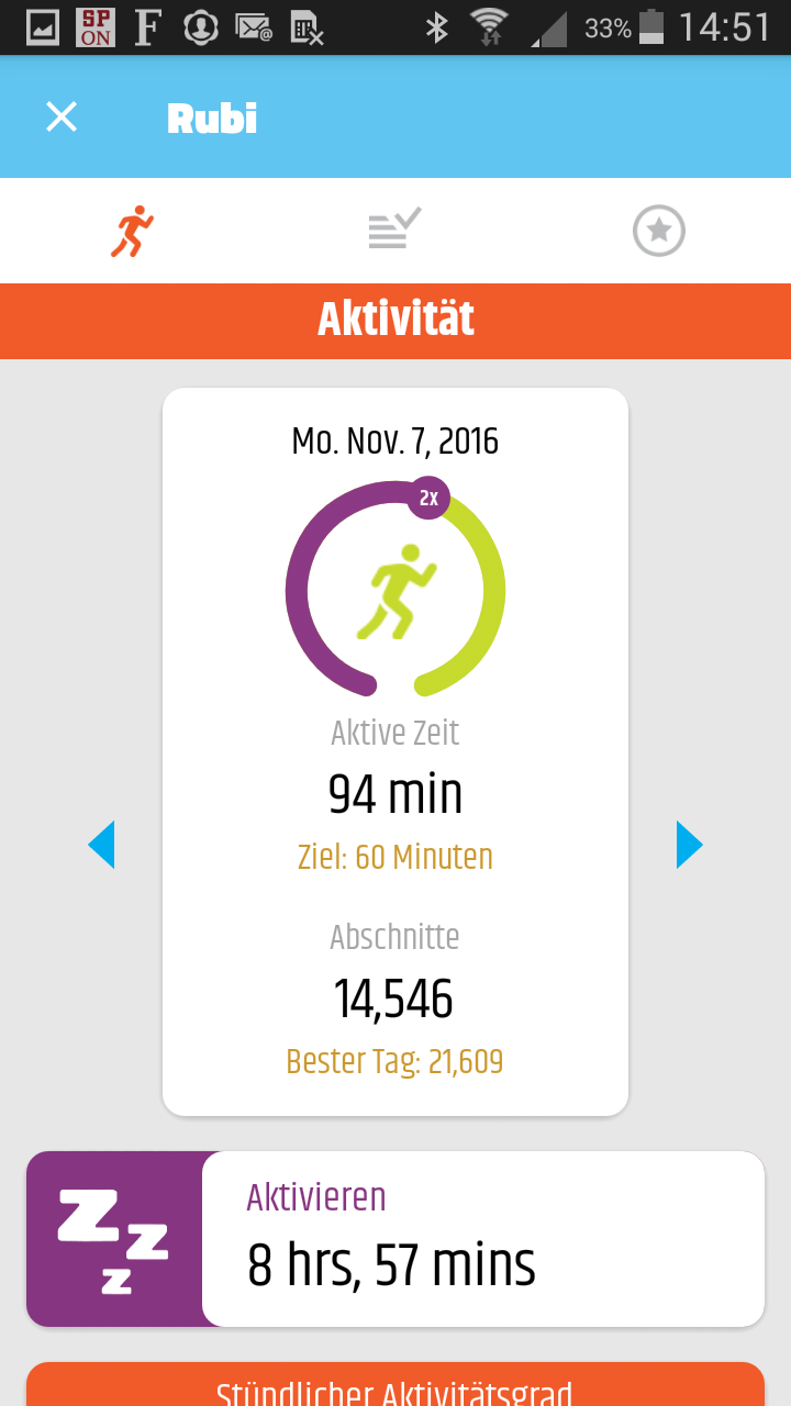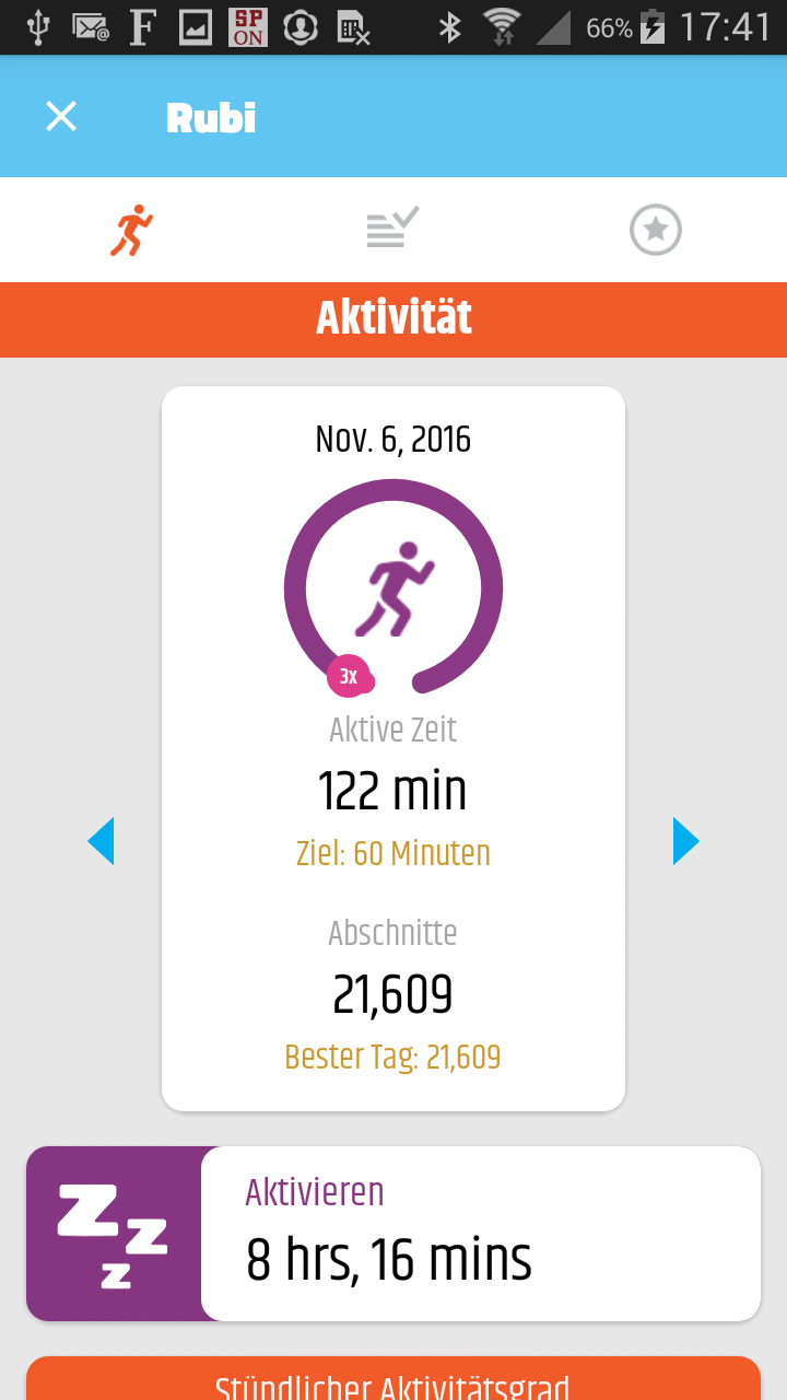 Bei unseren Kindern hat die Motivation zur Bewegung durch den Schrittzähler und die Anzeige der aktiven Minuten in Verbindung mit dem Erlebnispfad hervorragend geklappt. Gewünscht haben wir uns mehr Einstellungen bzgl. der Zielsetzung.