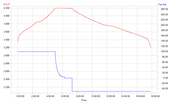 Wir haben den Akku mit CC-CV (100mA, 4,2 Volt) geladen und dann mit 50mA bis 3,2 Volt entladen. Diese Entladung entspricht in etwa der Last, welche die fenix 1 und 2 verursachen. Dabei haben wir eine Kapazität von 525mAh gemessen! Damit übertrifft der Akku die Herstellerangabe. In der Praxis ist die Laufzeit der Garmin fenix 1/2 mit der neuen Batterie nicht schlechter als mit dem Originalakku. Ob das gleiche auch für die Zyklenfestigkeit gilt, konnten wir bislang noch nicht ausführlich genug testen.