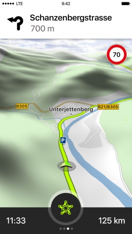 Sehr gute Software mit vielen kleinen Details die ich beim TomTom Rider 410 vermisst habe.